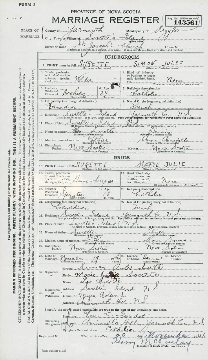 2. PRINT name in full Surette, Simon Jules