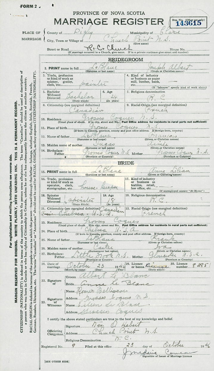 Groom Joseph Albert LeBlanc