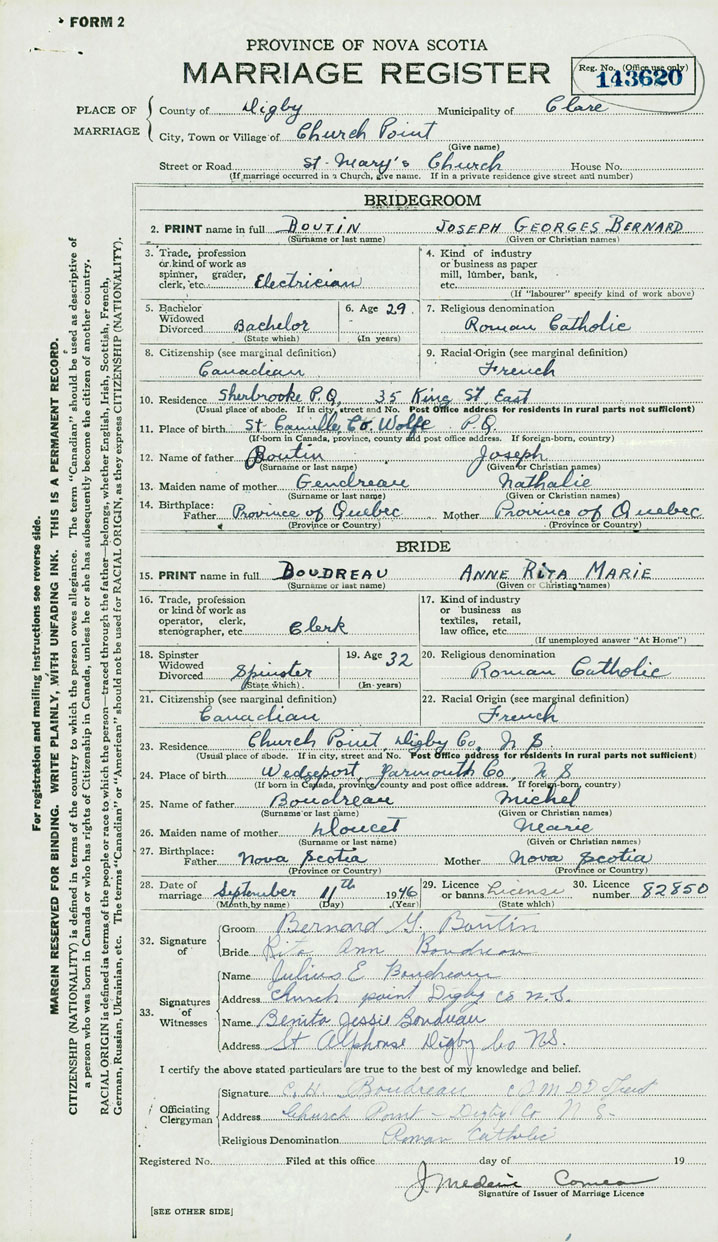 Groom Joseph Georges Bernard Boutin