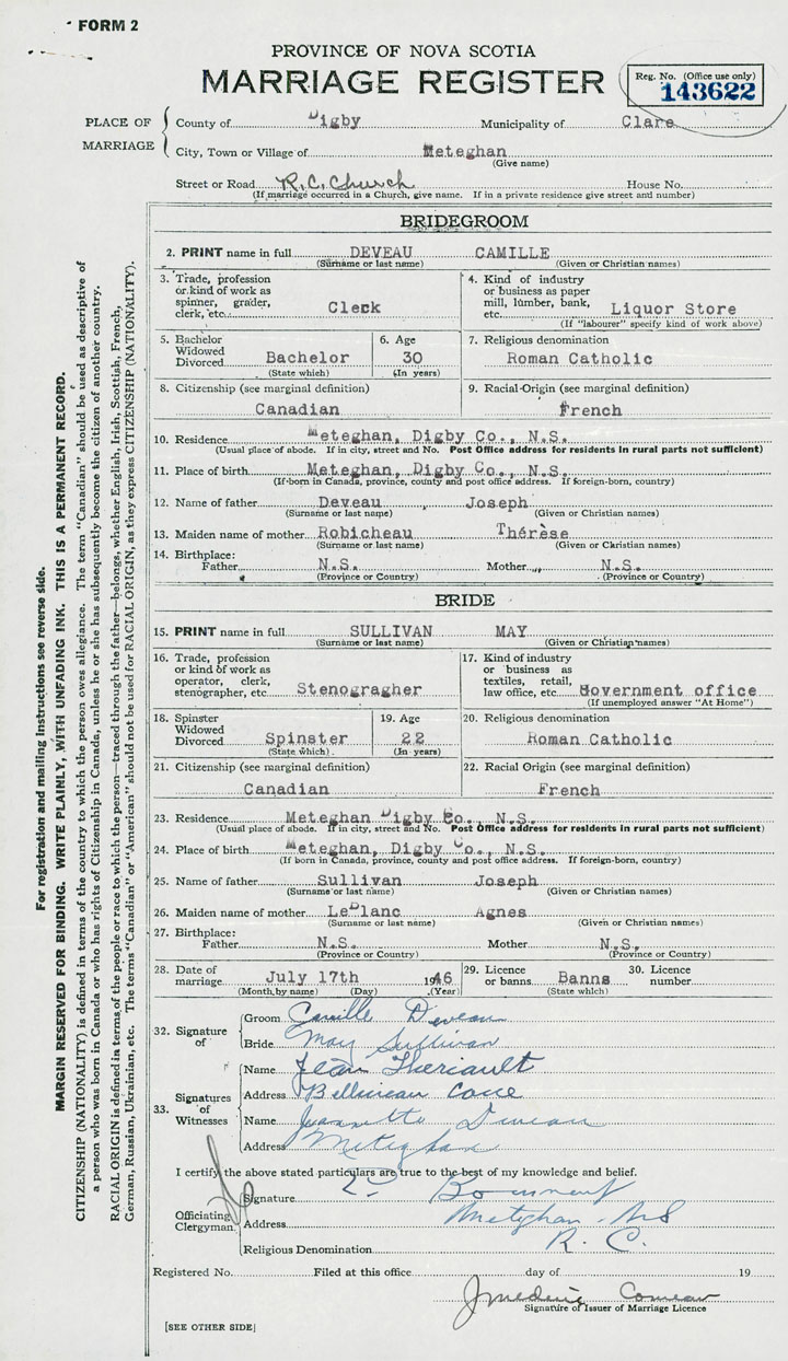 24. Place of birth Meteghan, Digby County