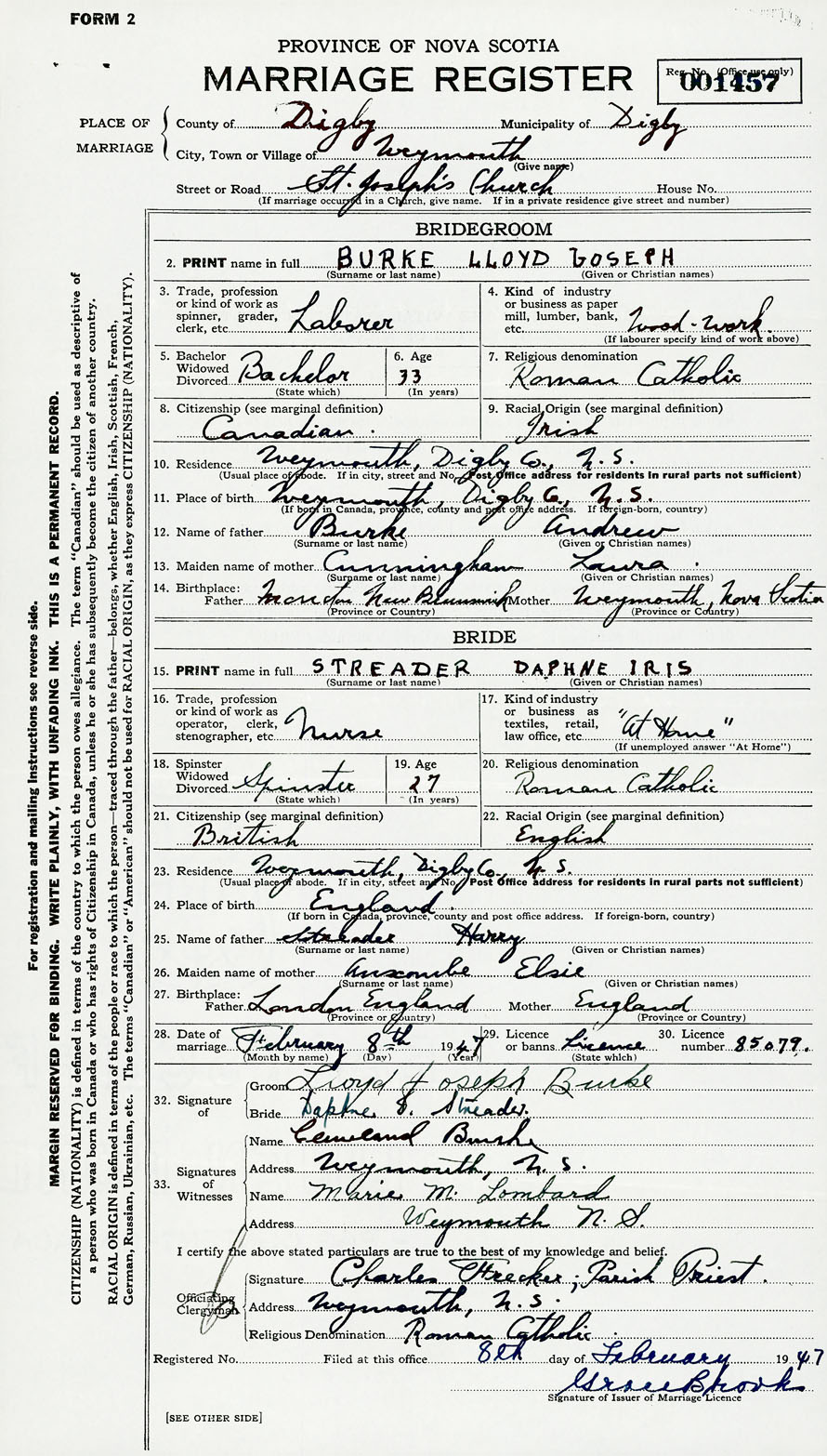 Groom Lloyd Joseph Burke