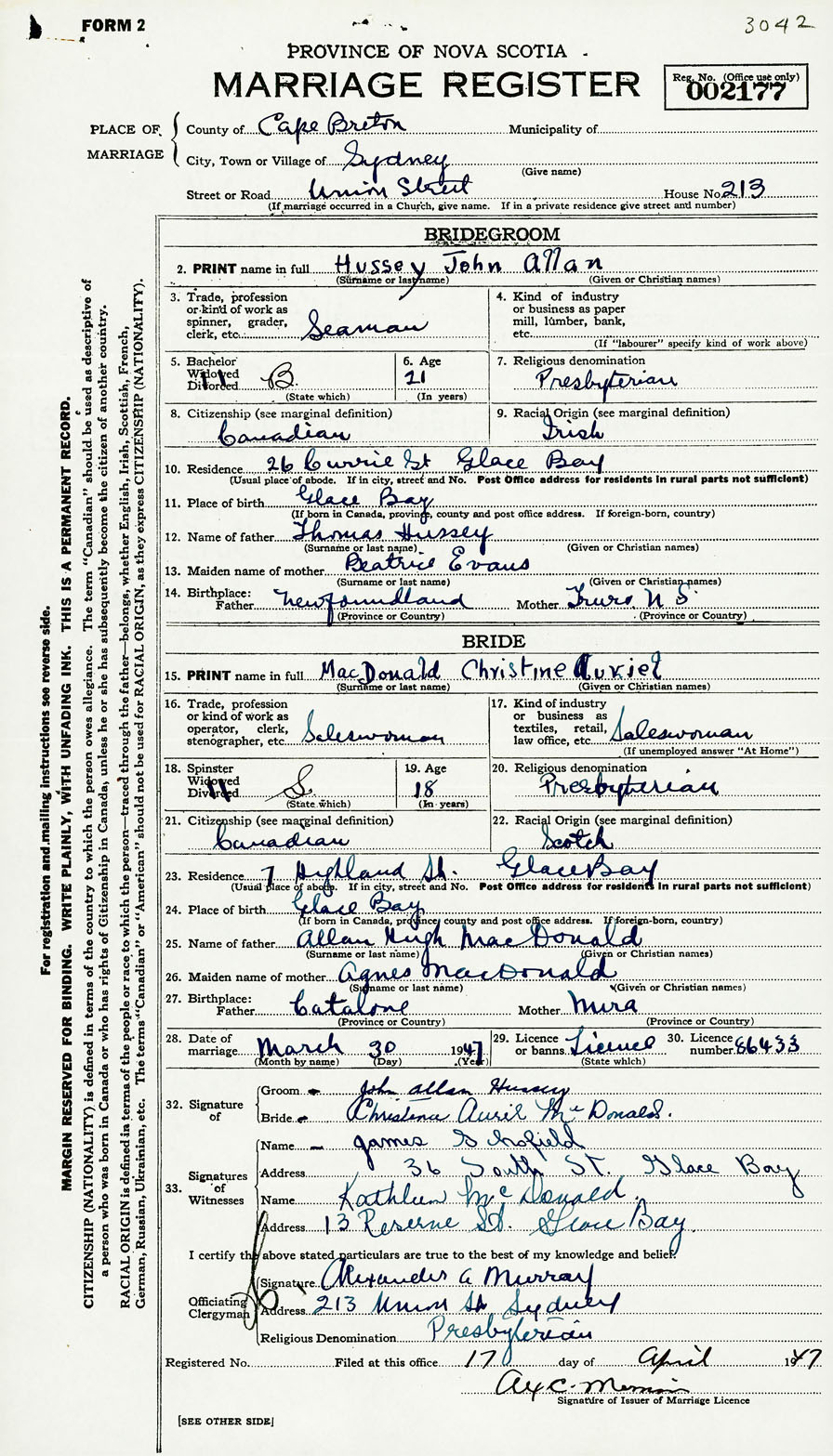Groom John Allan Hussey
