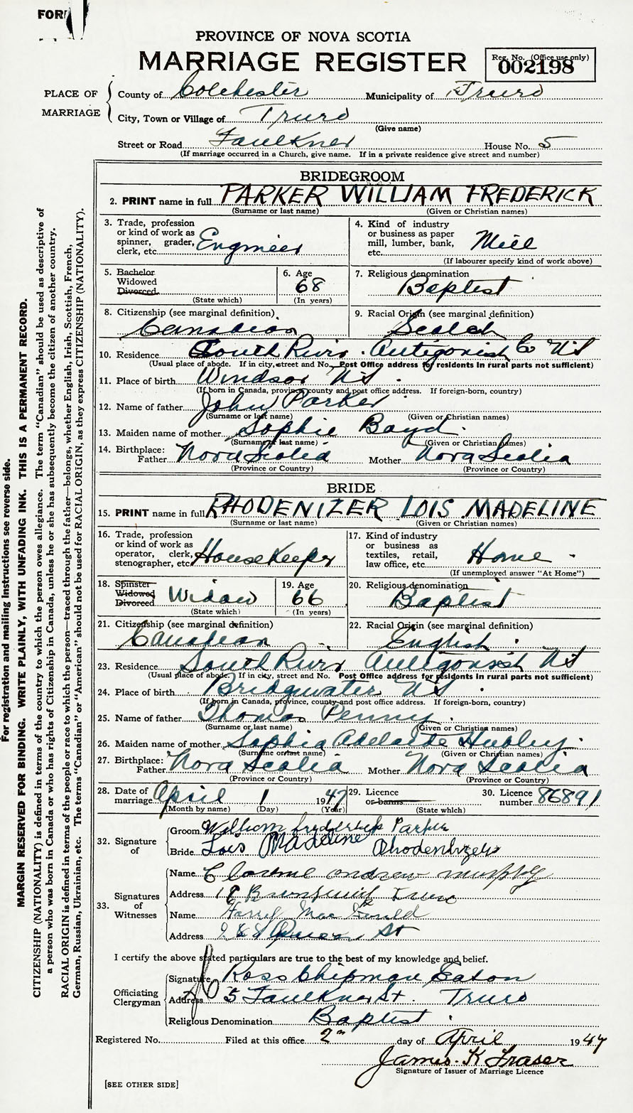 27. Birthplace Father Nova Scotia Mother Nova Scotia