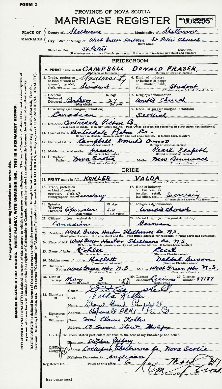 2. PRINT name in full Campbell, Donald Fraser