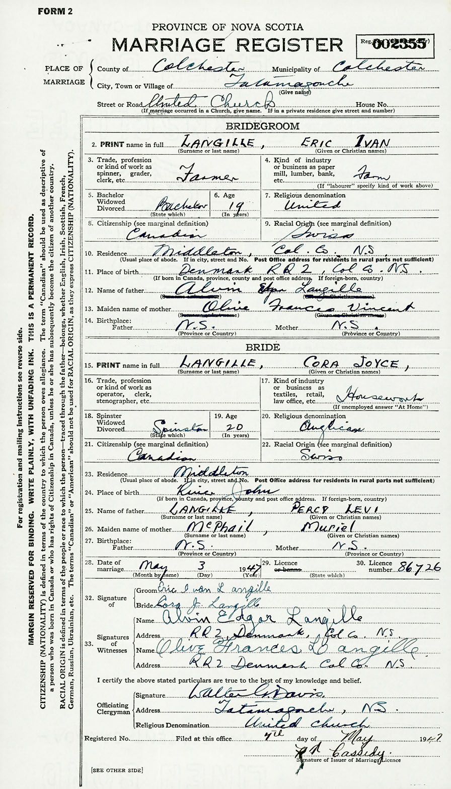 Bride Cora Joyce Langille