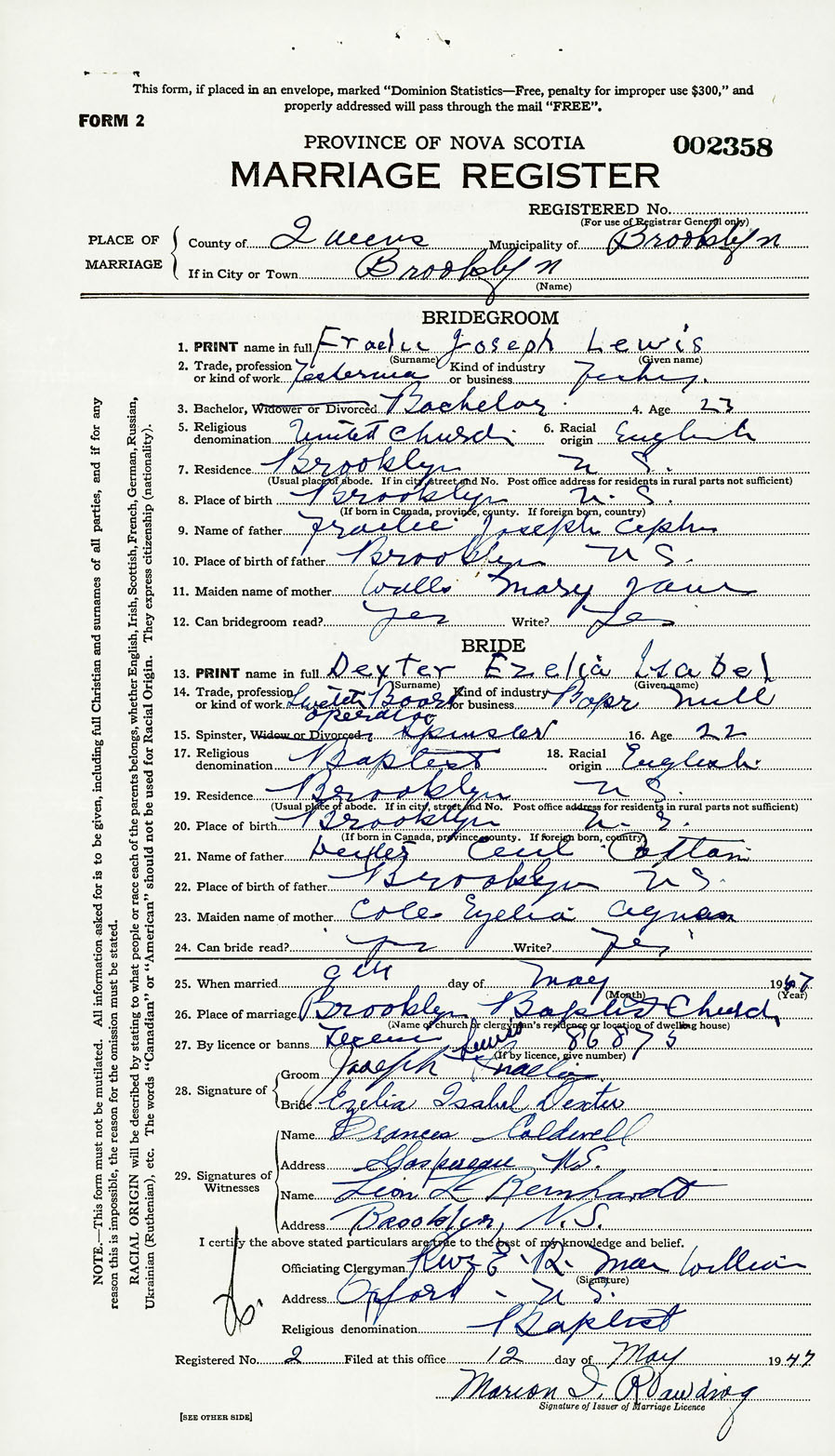 Registration: Year: 1947 number: 002358