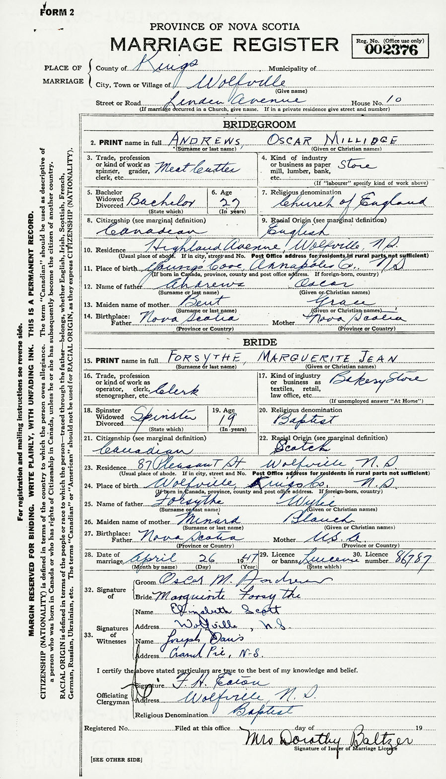 Registration: Year: 1947 number: 002376