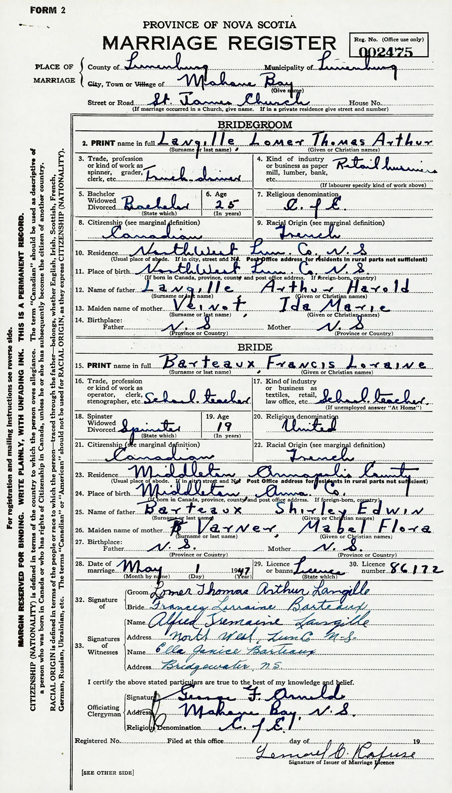 2. PRINT name in full Langille, Lomer Thomas Arthur
