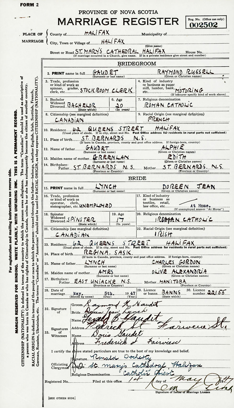 2. PRINT name in full Gaudet, Raymond Russell