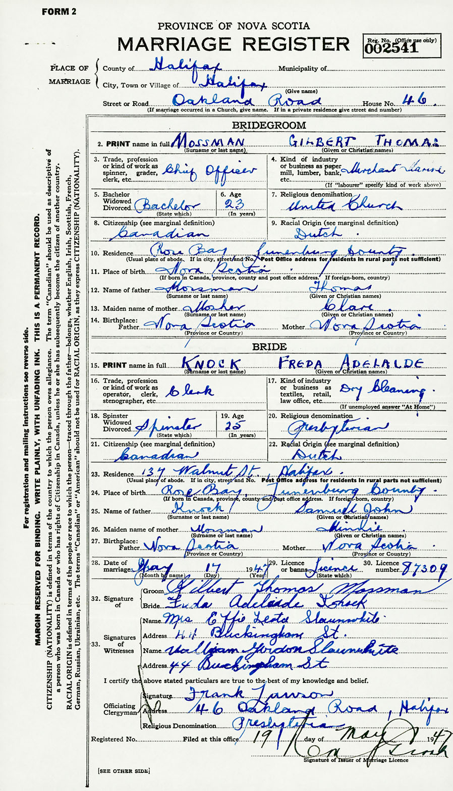 Registration: Year: 1947 number: 002541