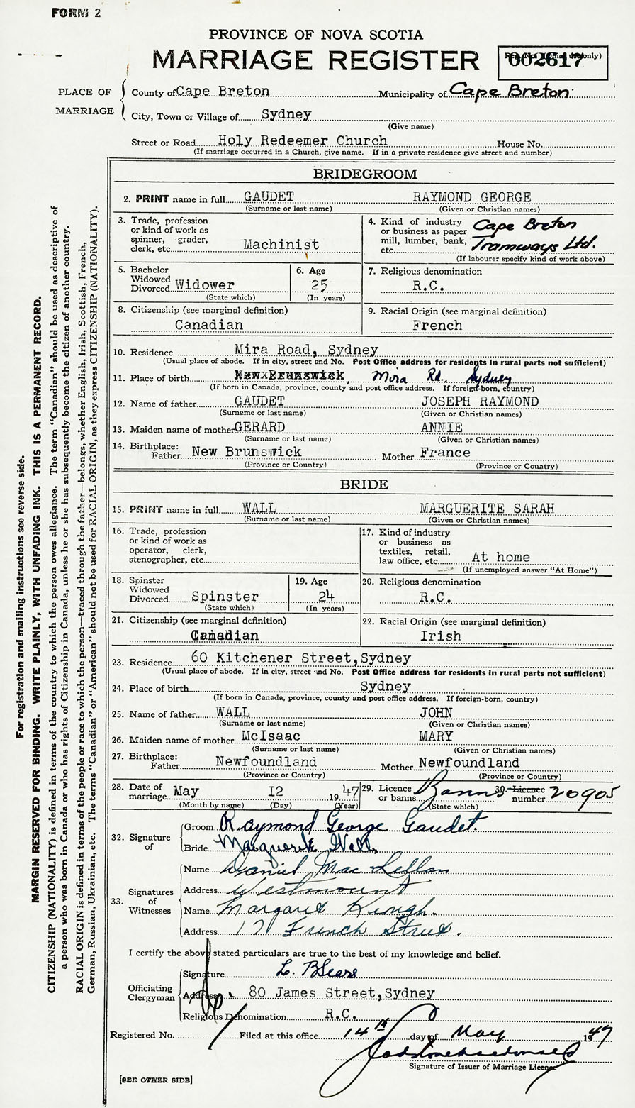 Groom Raymond George Gaudet