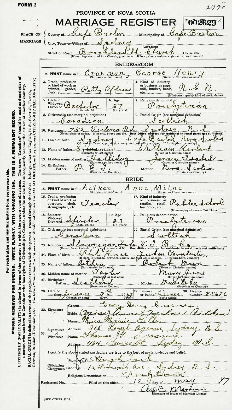 2. PRINT name in full Crosman, George Henry