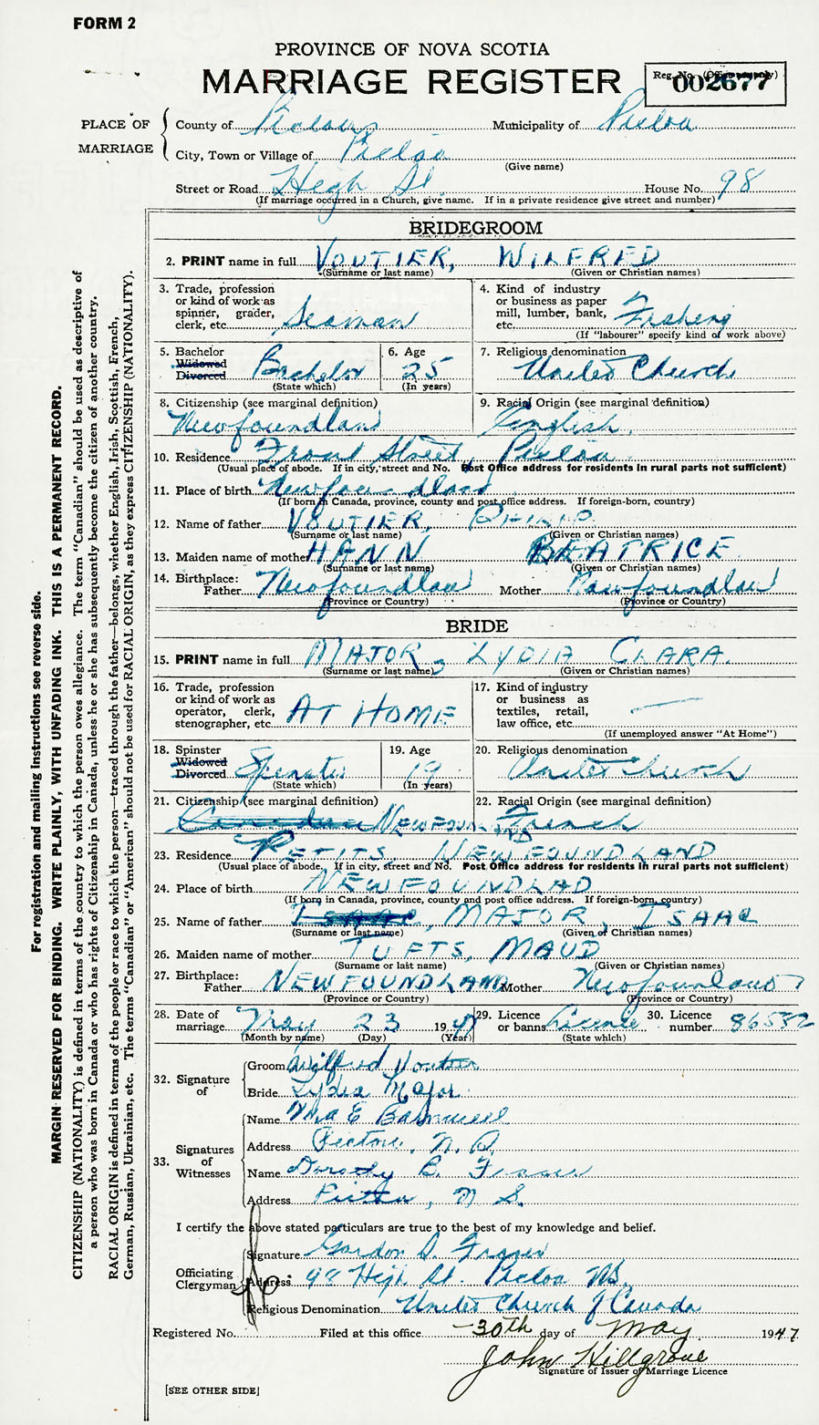 14. Birthplace Father Newfoundland Mother Newfoundland