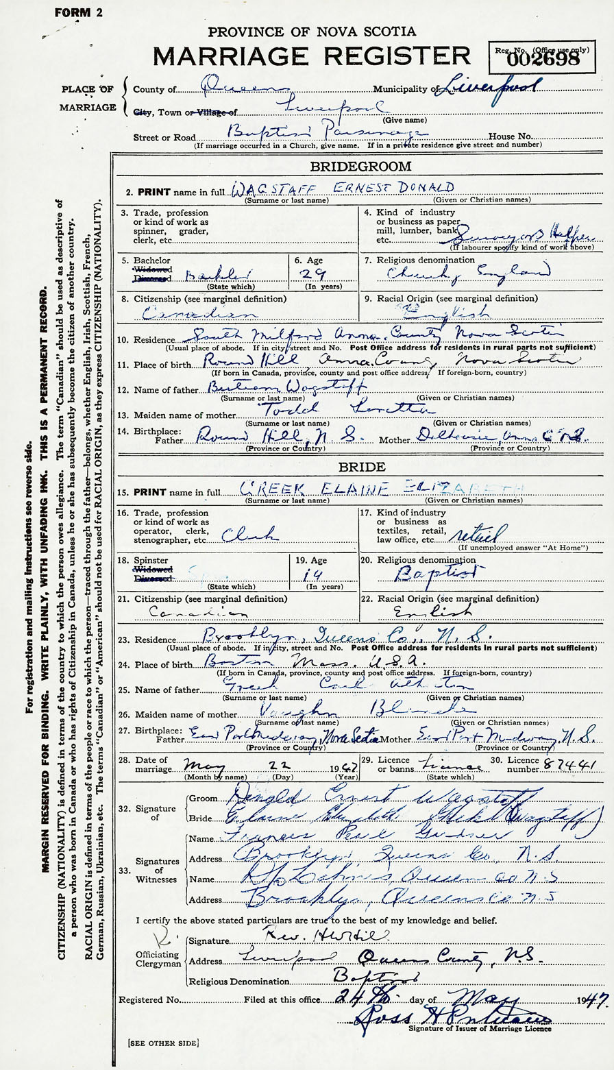 Groom Ernest Donald Wagstaff