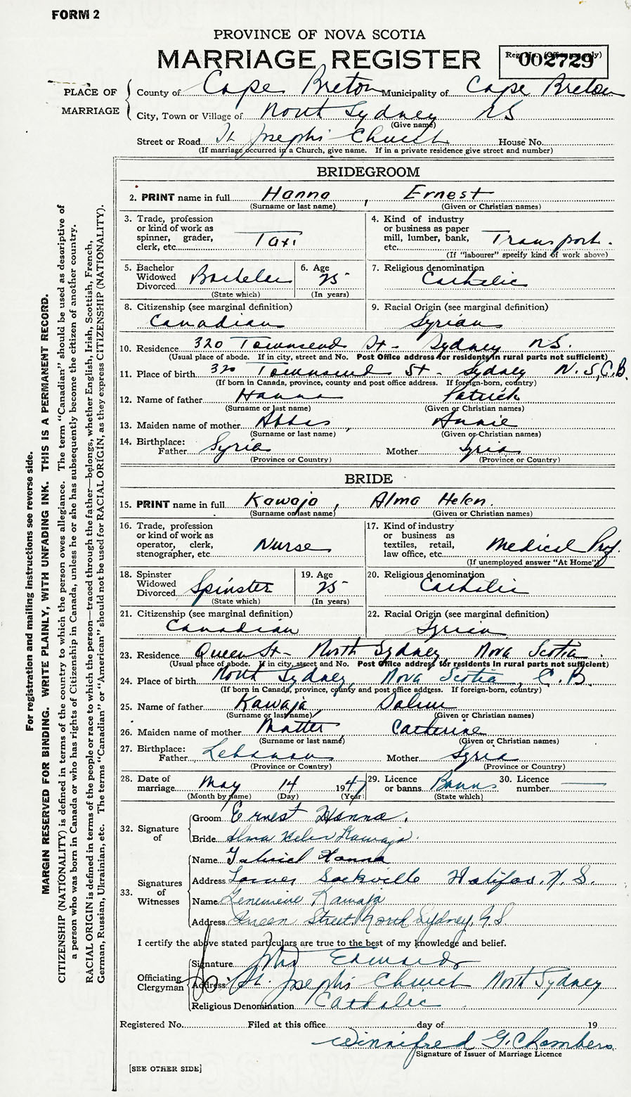 Groom Ernest Hanna