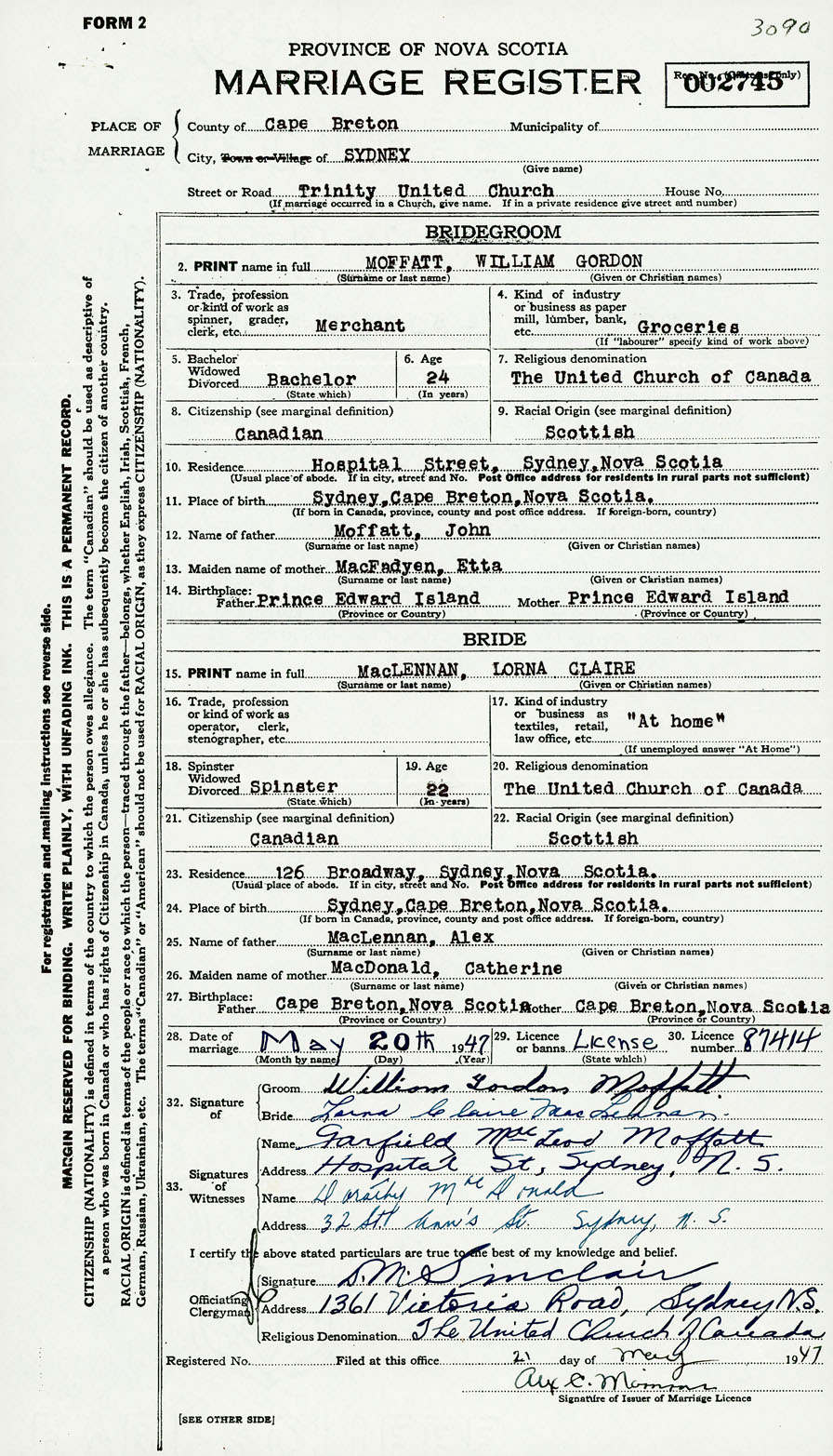 2. PRINT name in full Moffatt, William Gordon