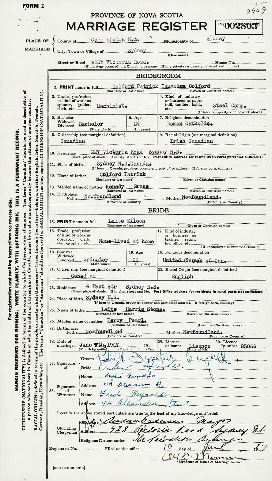 Groom Patrick Ignatius Colford