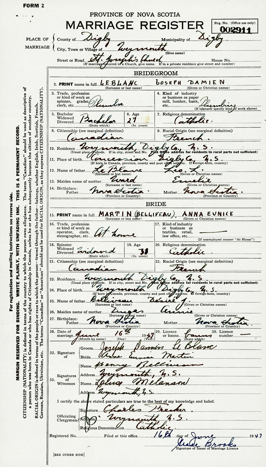 2. PRINT name in full LeBlanc, Joseph Damien