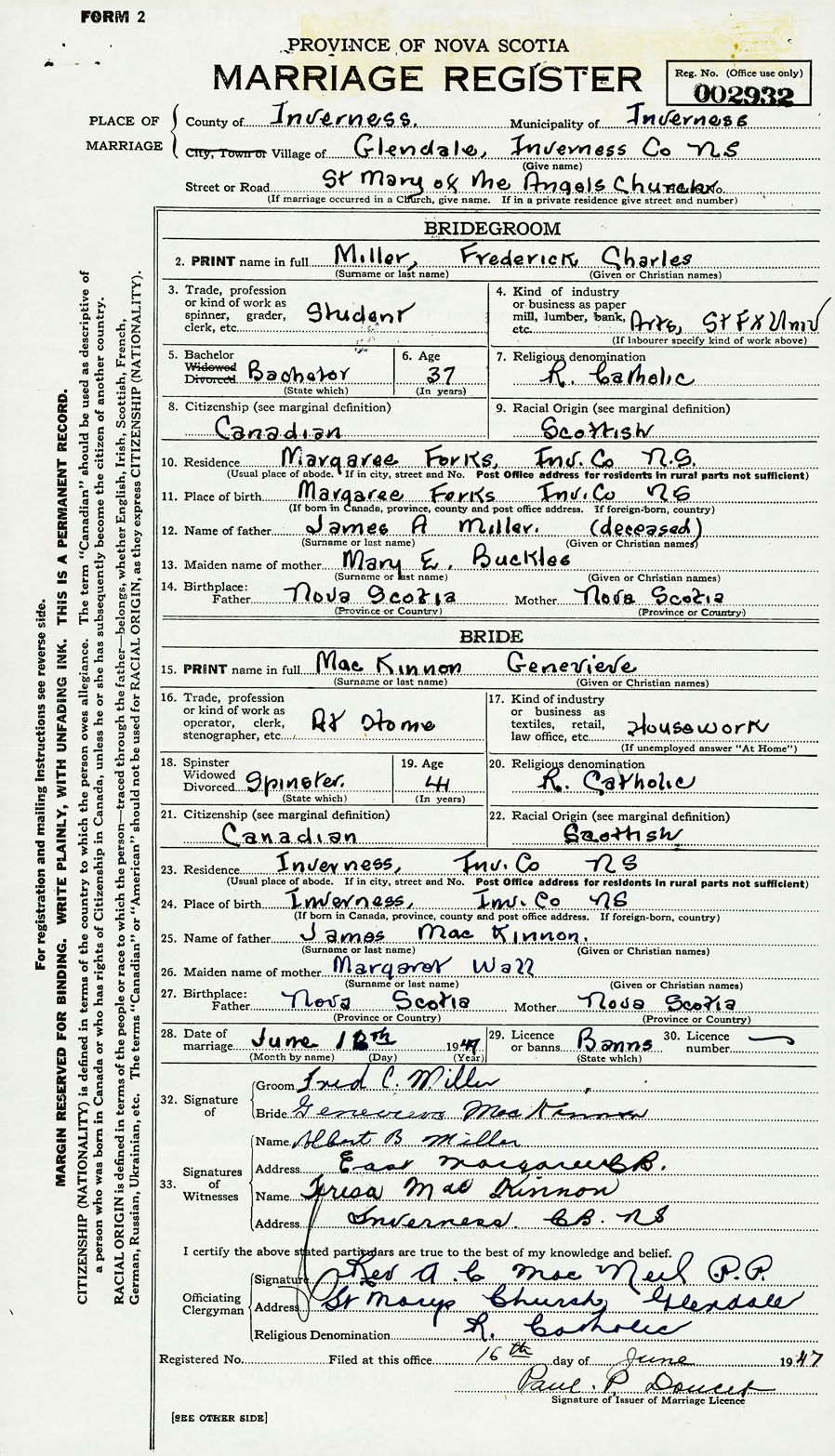 Officiating Clergyman Rev. A.C. MacNeil P.P.