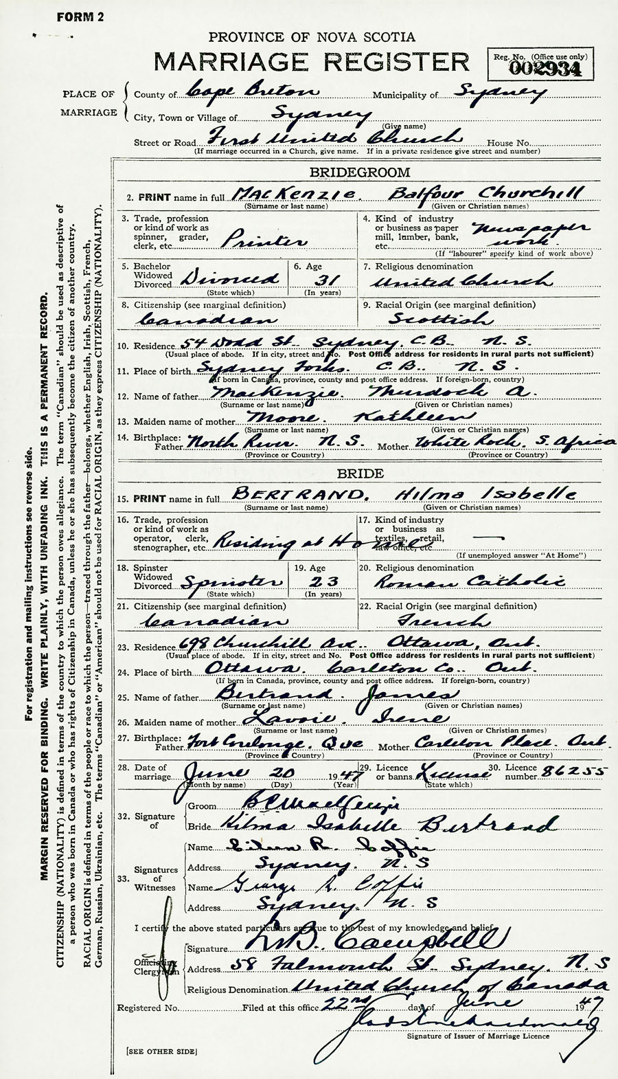 2. PRINT name in full MacKenzie, Balfour Churchill
