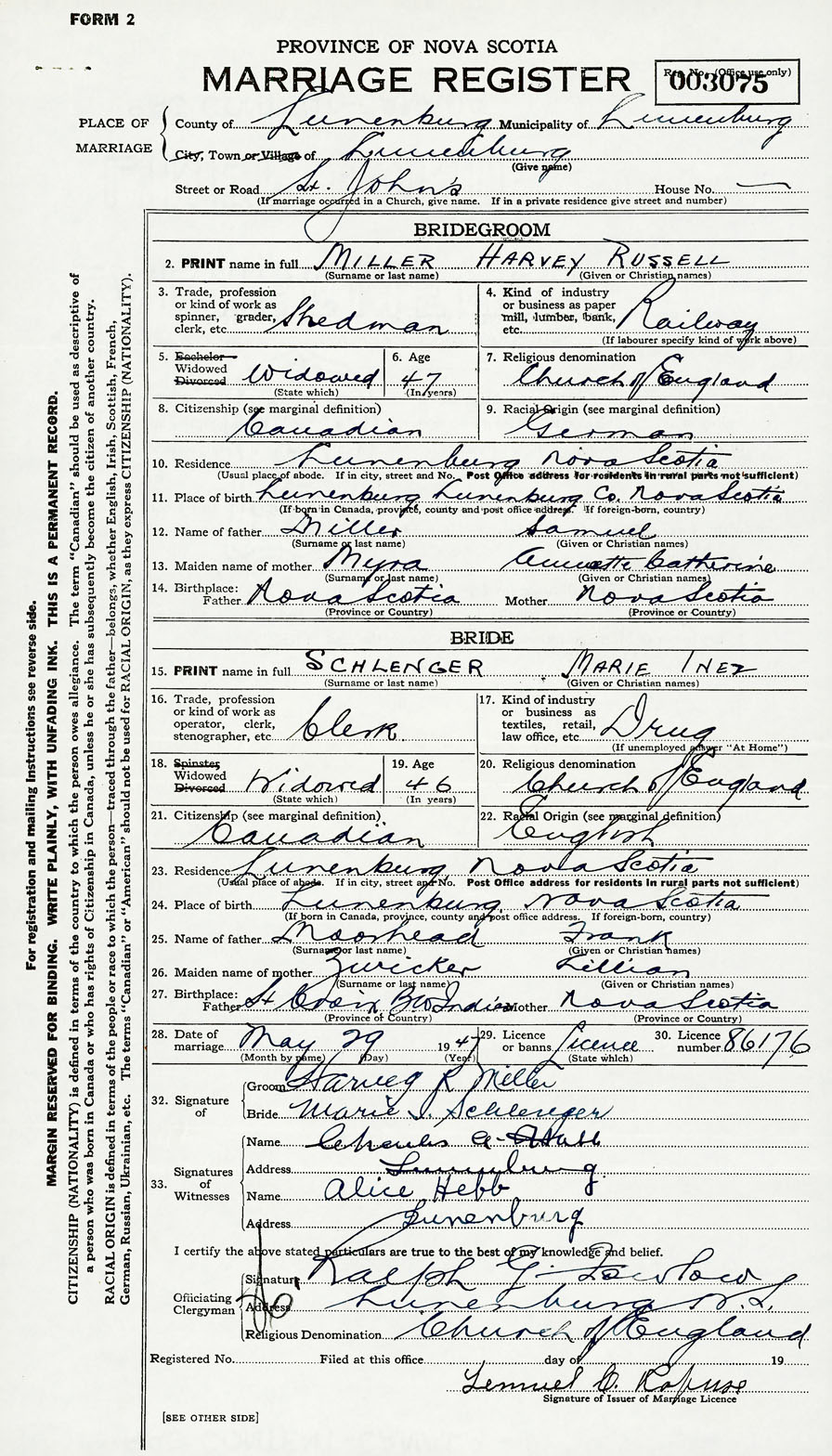 11. Place of birth Lunenburg, Lunenburg County,Nova Scotia