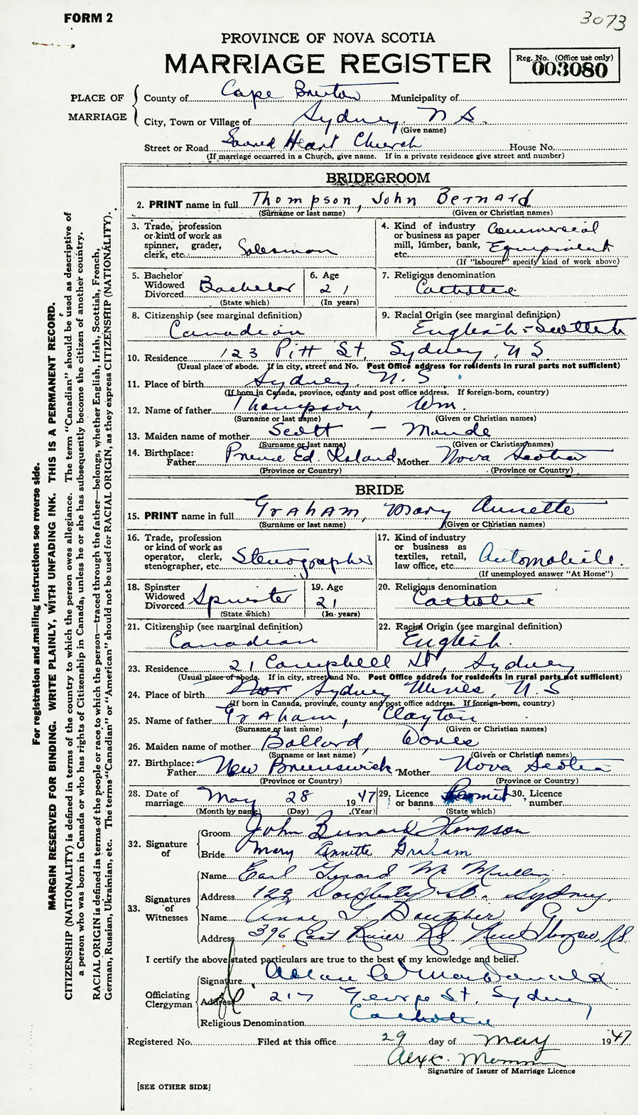 Registration: Year: 1947 number: 003080