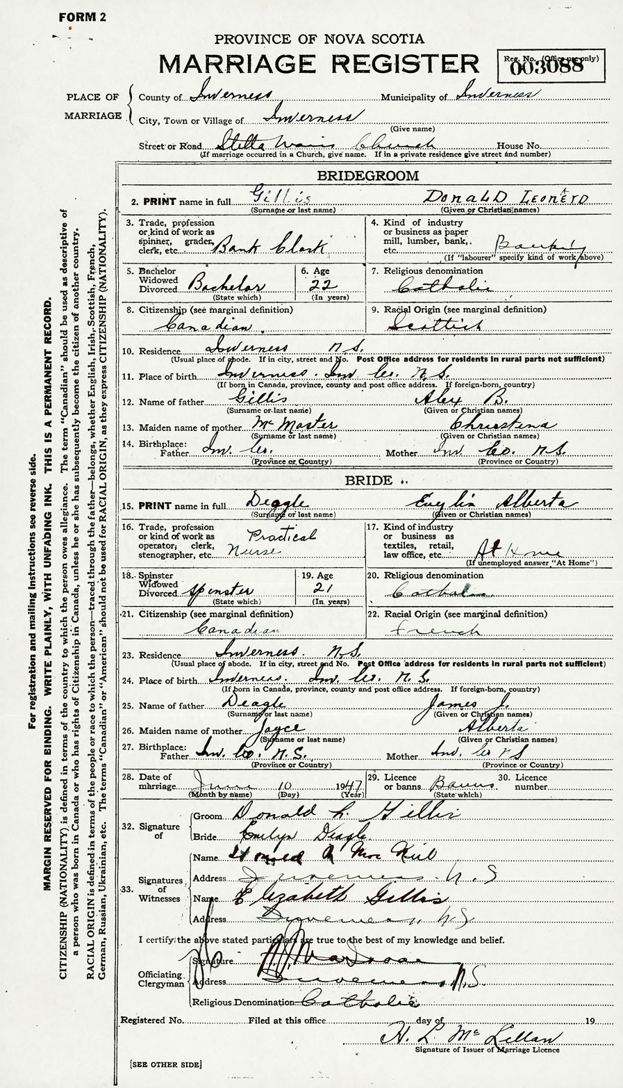 Groom Donald Leonard Gillis
