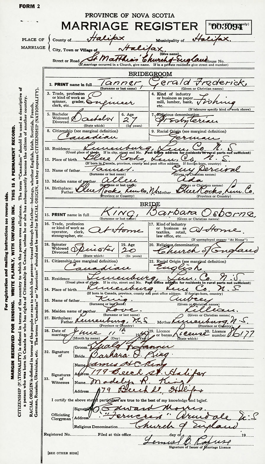 Groom Gerald Frederick Tanner