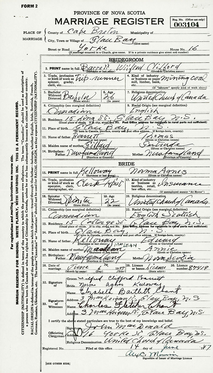 Officiating Clergyman John MacDonald