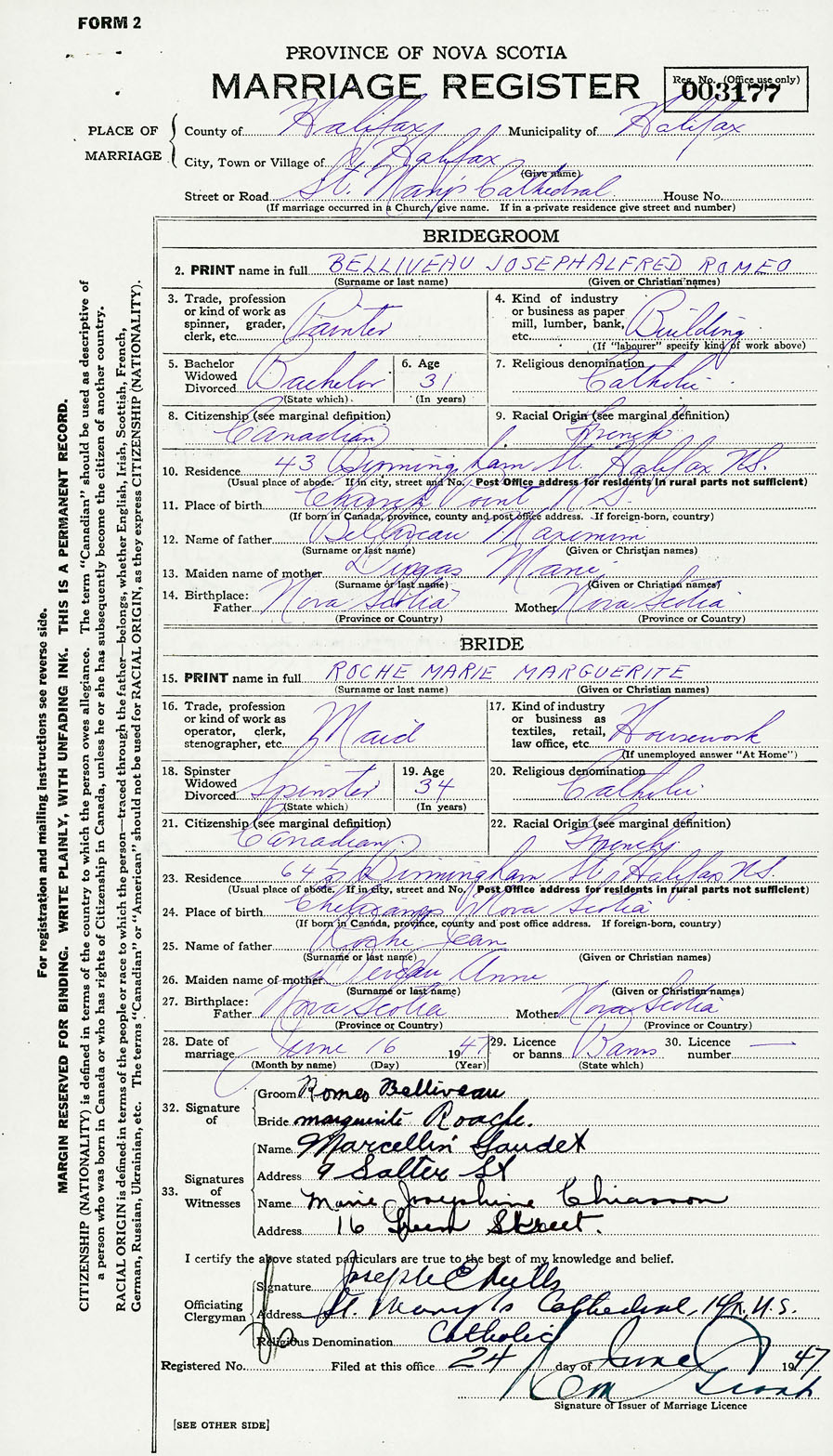 2. PRINT name in full Belliveau, Joseph Alfred Romeo