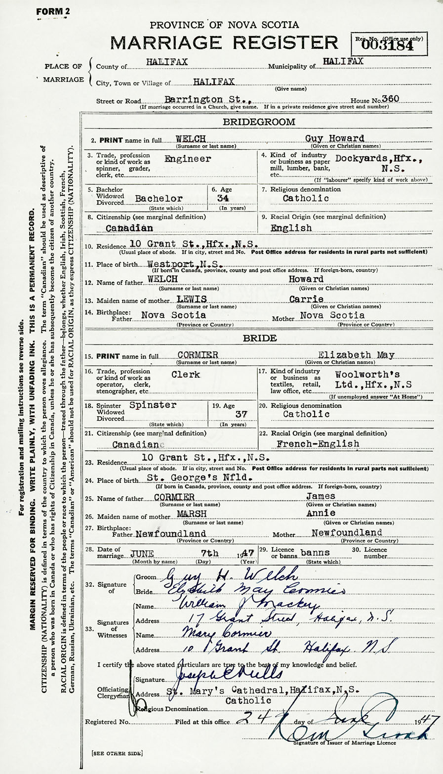 Registration: Year: 1947 number: 003184