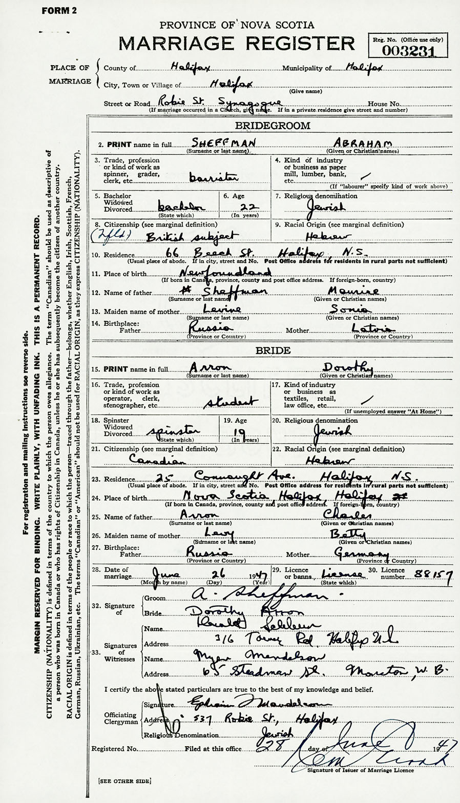 21. Citizenship Canadian 22. Racial origin Hebrew