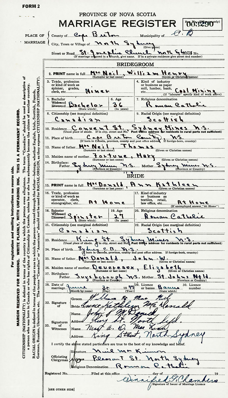 14. Birthplace Father Sydney Mines, Cape Breton, Nova Scotia Mother Sydney Mines, Cape Breton, Nova Scotia