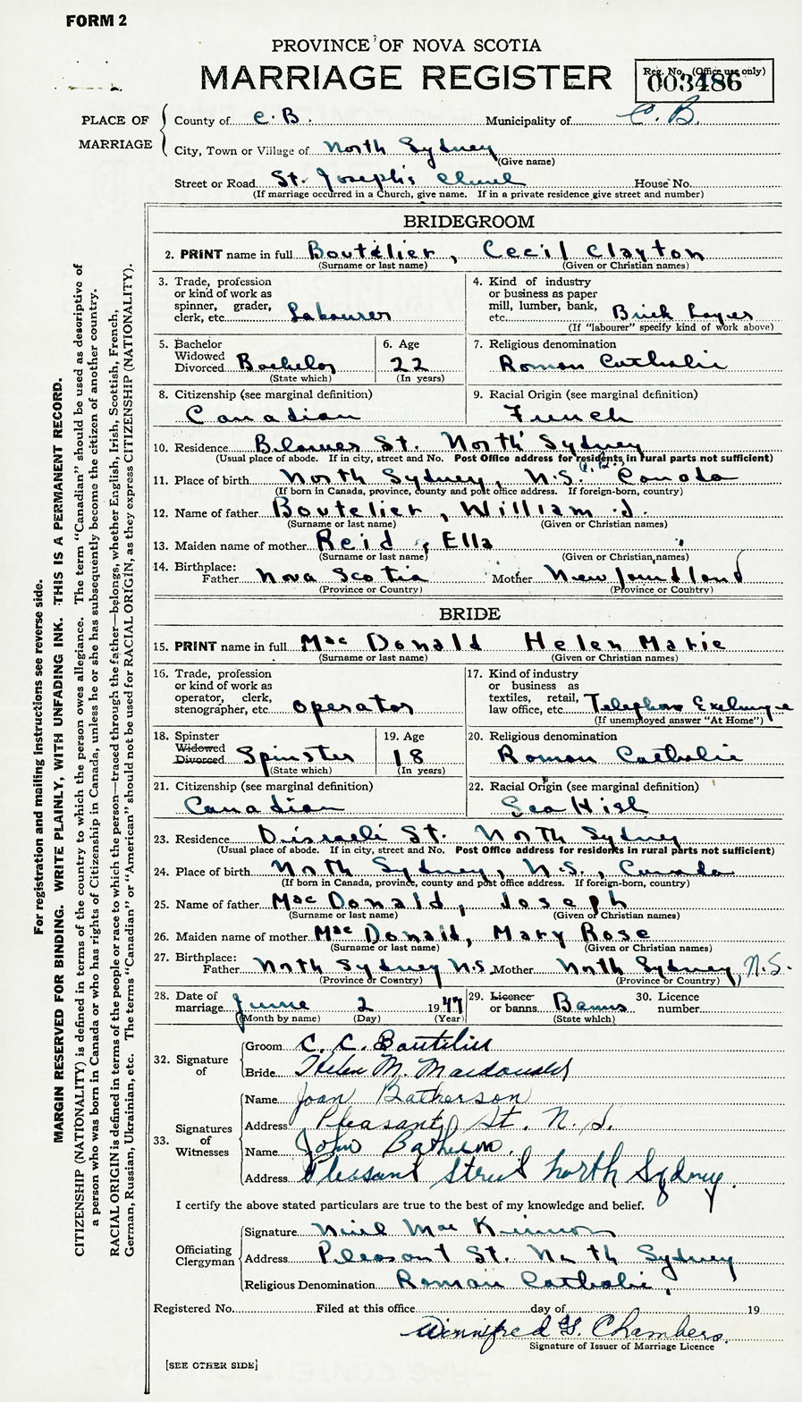 Groom Cecil Clayton Boutilier