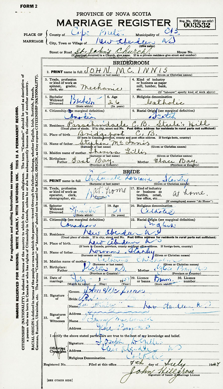 Registration: Year: 1947 number: 003532