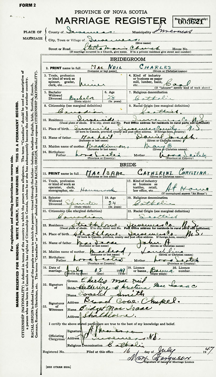 Groom Charles MacNeil