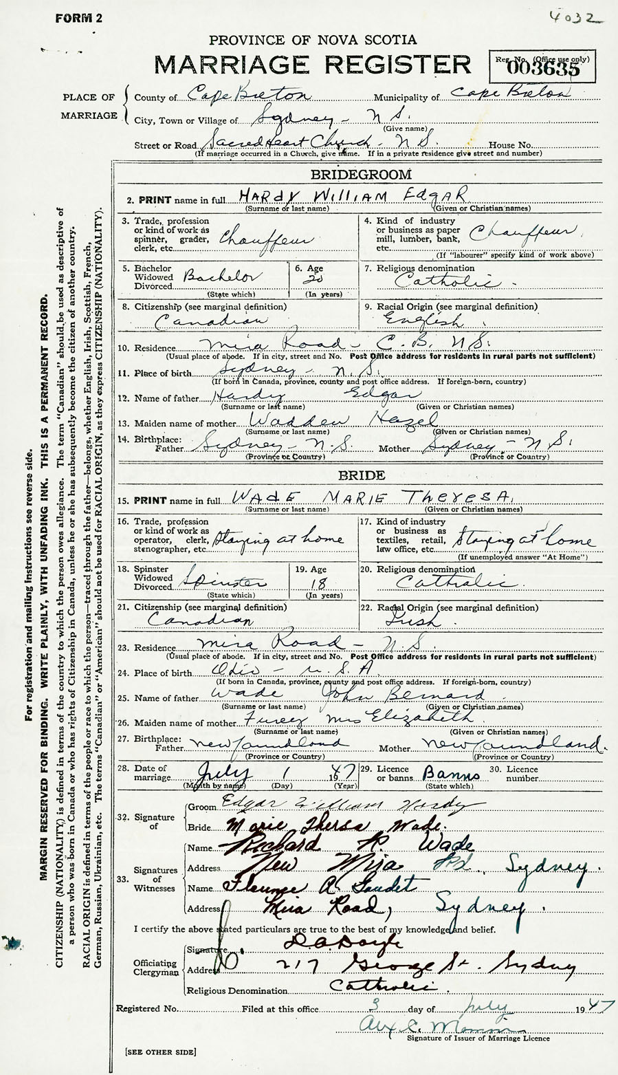 Registration: Year: 1947 number: 003635