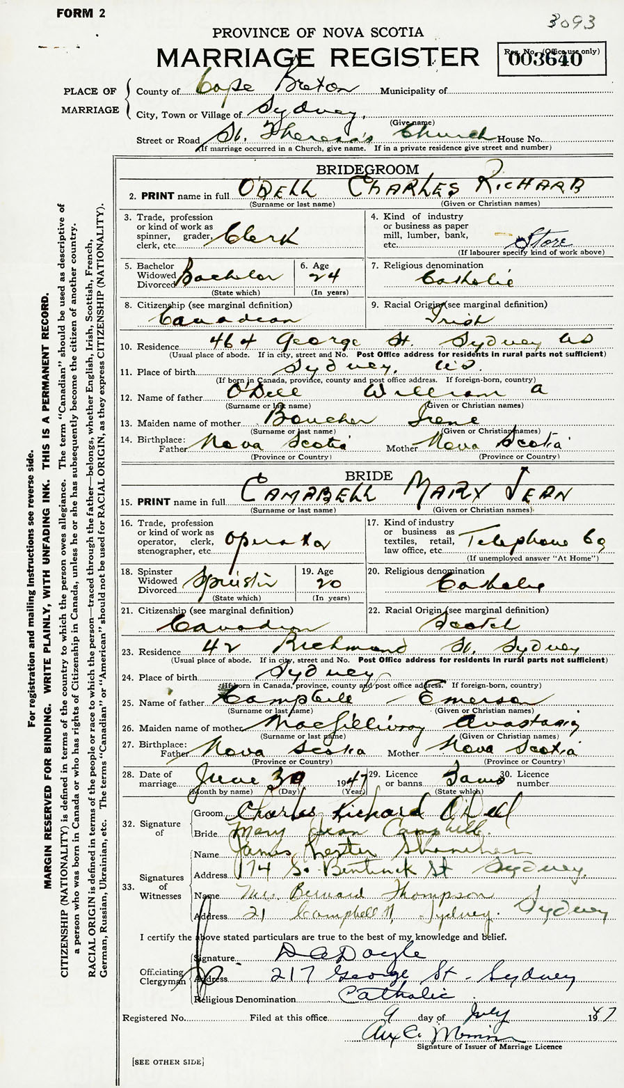 Registration: Year: 1947 number: 003640