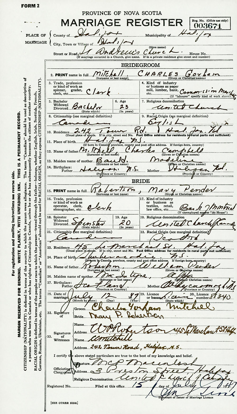 14. Birthplace Father Halifax, Nova Scotia Mother Halifax, Nova Scotia