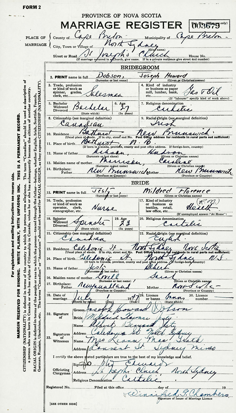 2. PRINT name in full Dobson, Joseph Howard