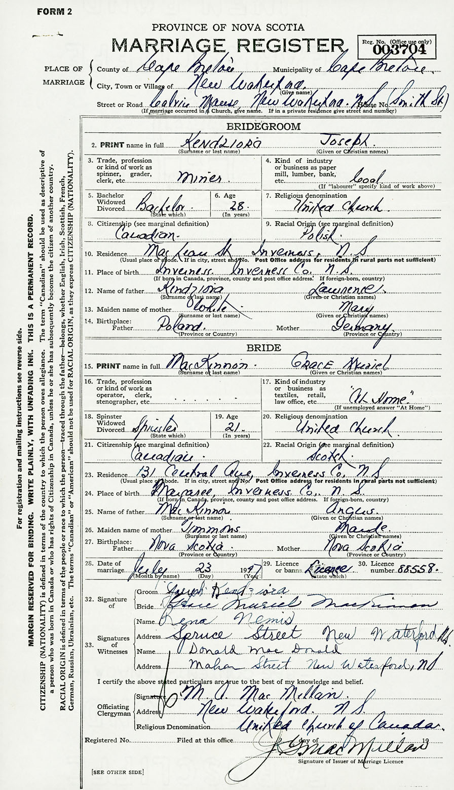 11. Place of birth Inverness, Inverness County, Nova Scotia