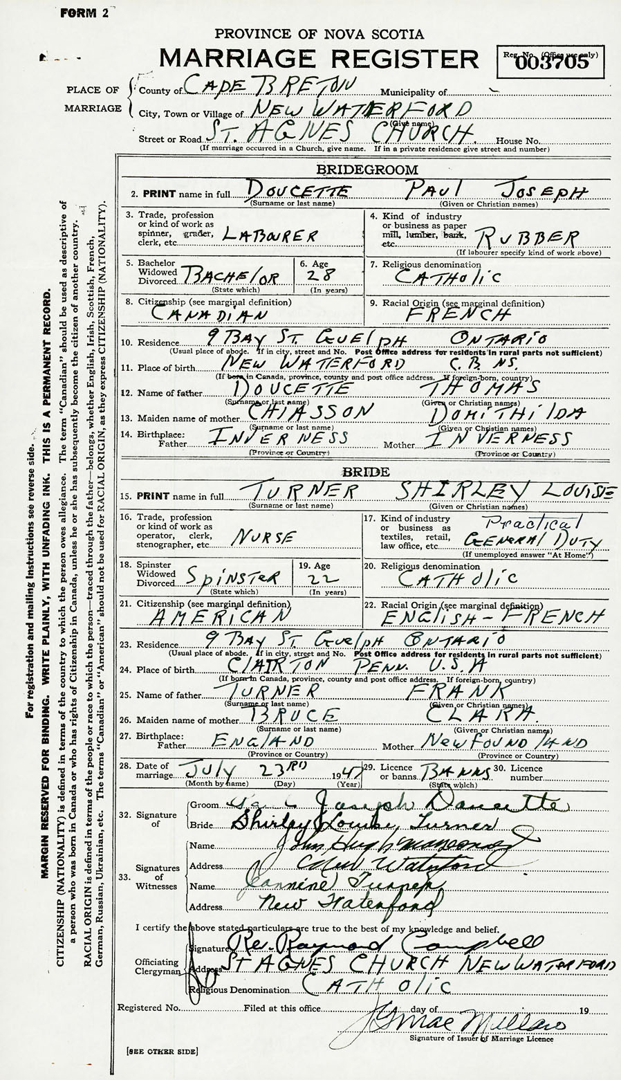 2. PRINT name in full Doucette, Paul Joseph