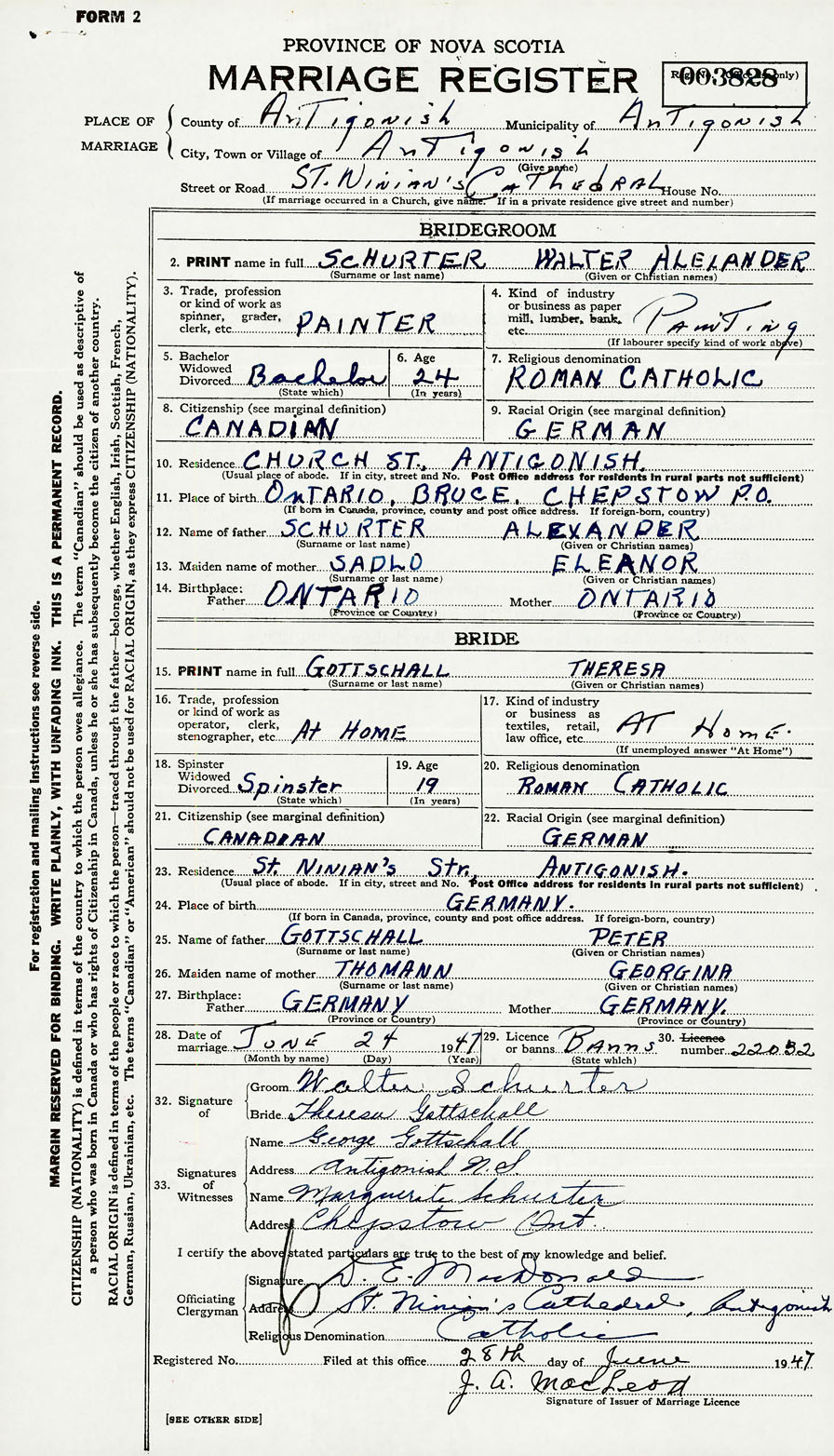 PLACE OF MARRIAGE County of Antigonish
