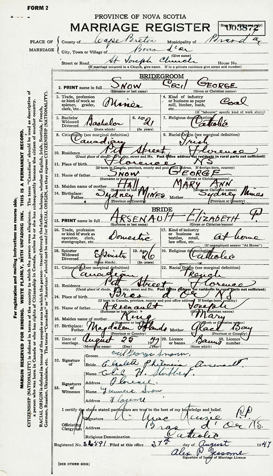 14. Birthplace Father Sydney Mines Mother Sydney Mines
