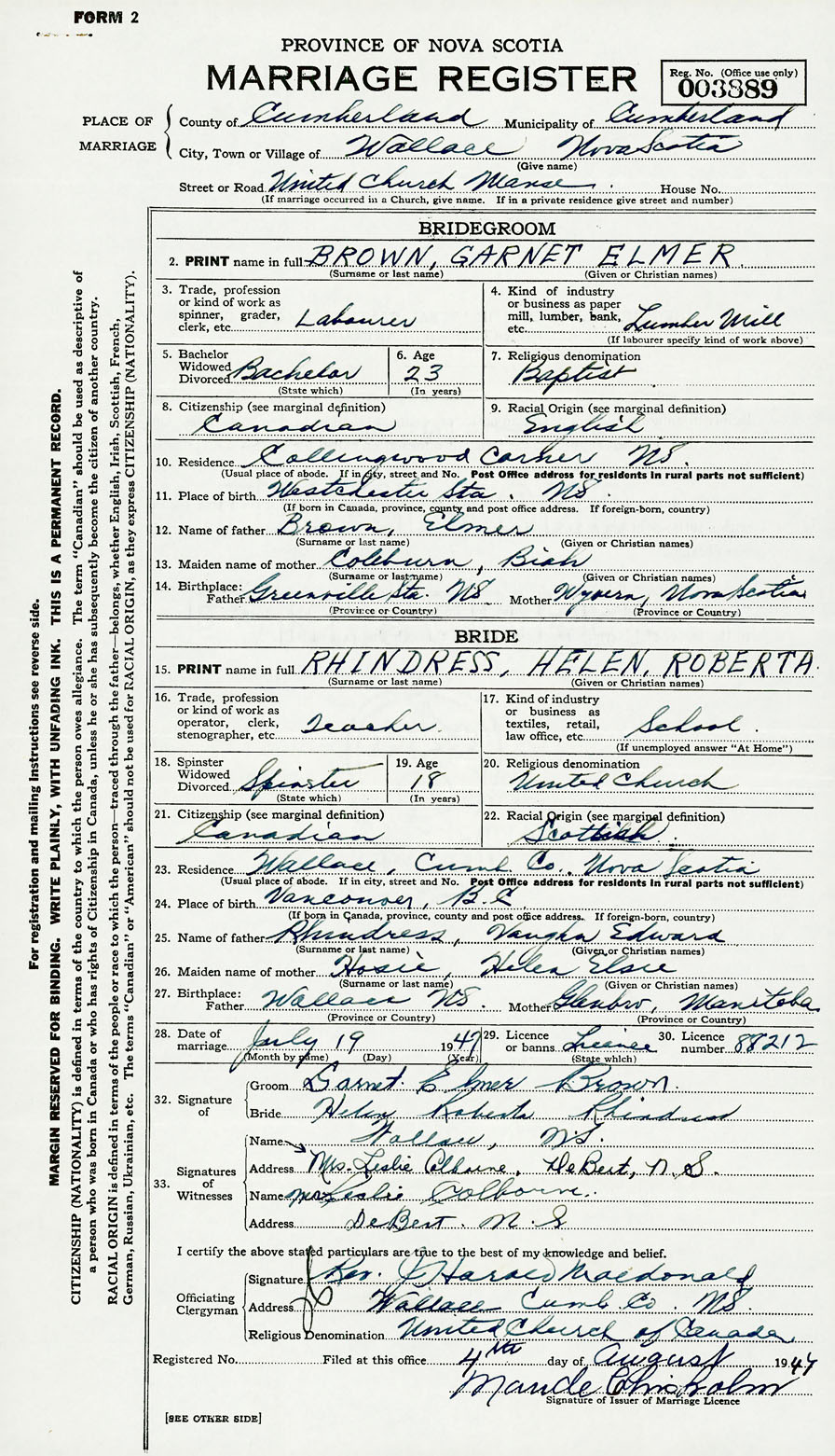 27. Birthplace Father Wallace, Nova Scotia Mother Glenbro, Manitoba