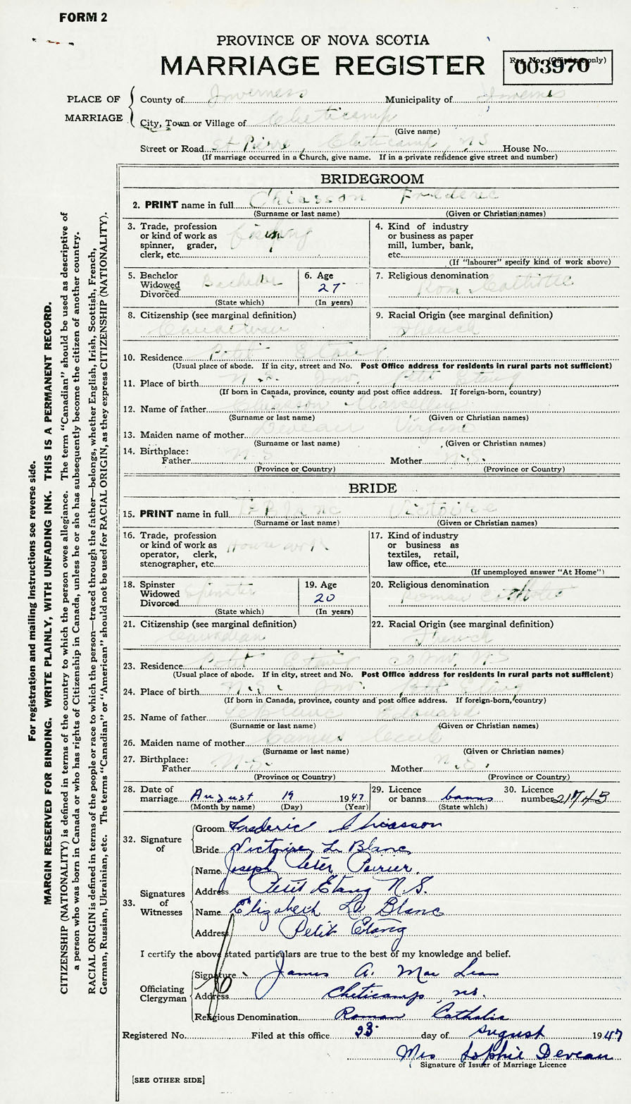 Groom Frederic Chiasson