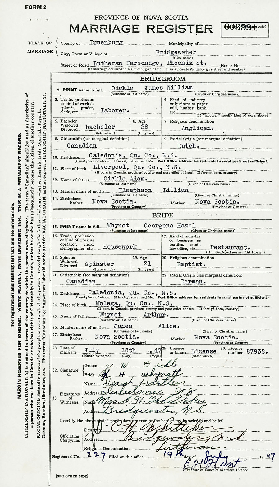 Bride Georgena Hazel Whynot