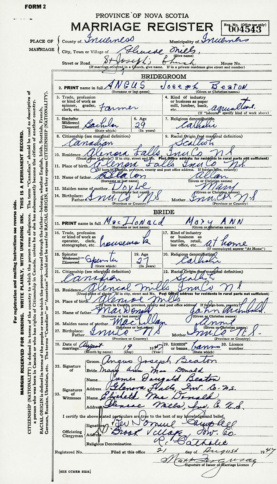 2. PRINT name in full Beaton, Angus Joseph