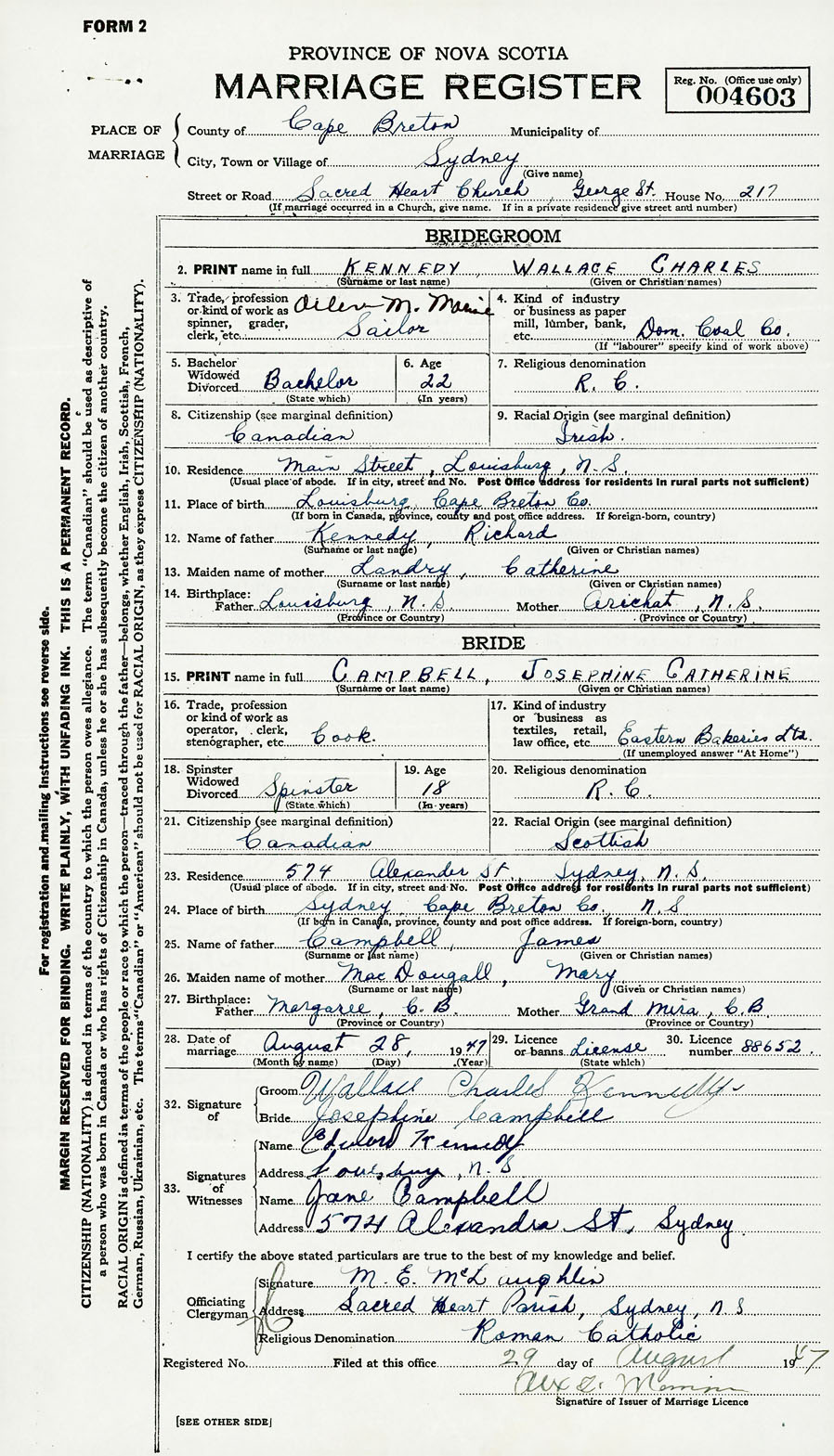 24. Place of birth Sydney, Cape Breton County, Nova Scotia