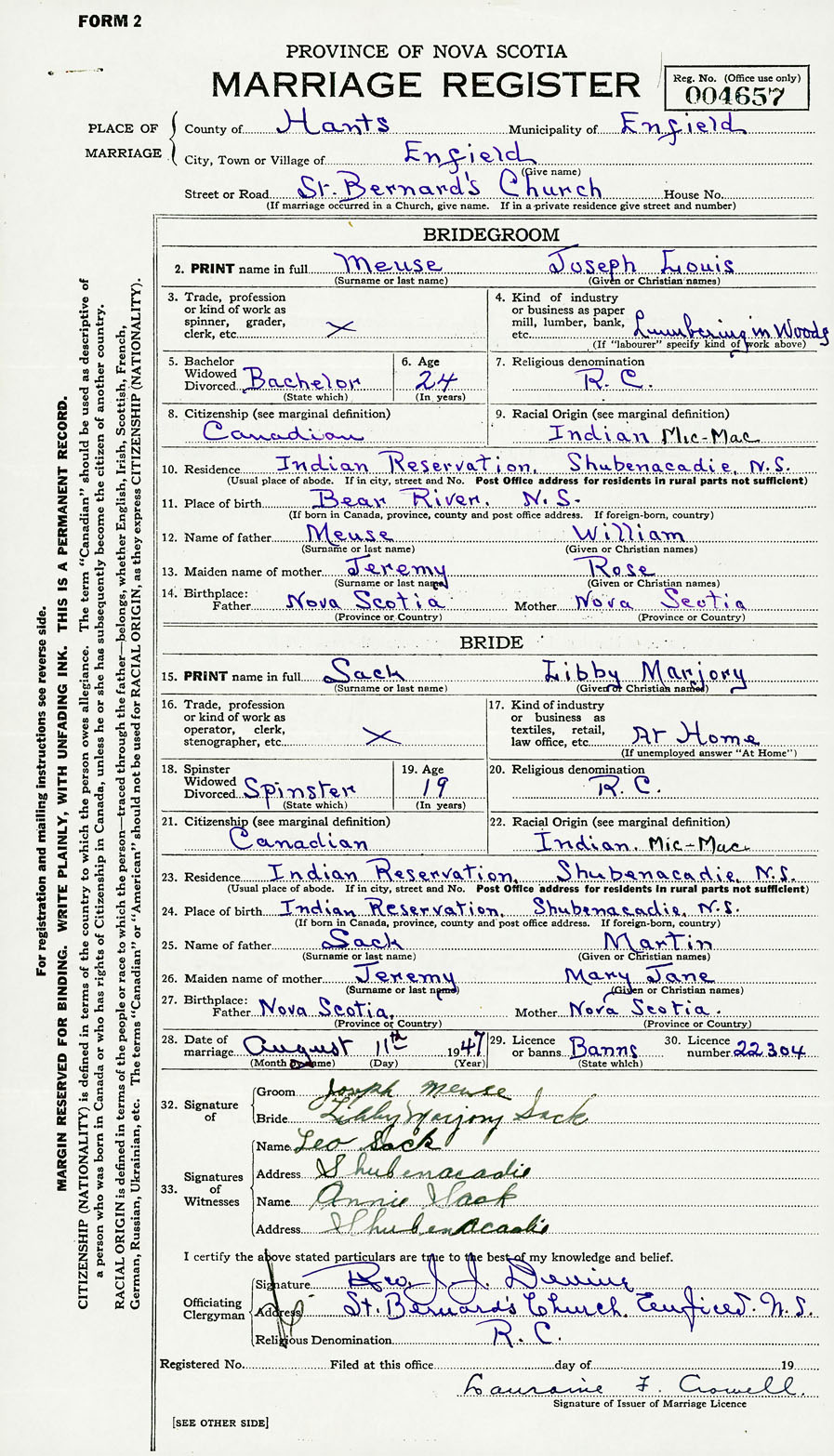 24. Place of birth Indian reservation Shubenacadie Nova Scotia